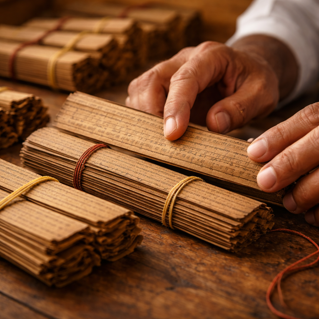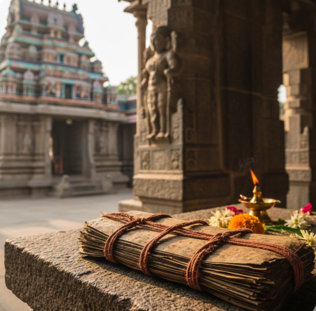 The history of Nadi Astrology traces back thousands of years to ancient South India, where enlightened sages such as Agastya and other revered Rishis are believed to have documented the destinies of future generations on palm leaf manuscripts through deep meditation and divine vision. These sacred texts, written in ancient Tamil script, contained detailed life predictions including personal identity, family, career, karma, and spiritual path. The manuscripts were carefully preserved and passed down through generations, with many safeguarded in institutions like the Saraswathi Mahal Library, while others remained with traditional Nadi reader families in Tamil Nadu. Despite centuries of historical changes, climate challenges, and political transitions, the palm leaf tradition survived through meticulous recopying and oral transmission, and today Nadi Astrology continues as a unique manuscript-based spiritual system that connects modern seekers with ancient prophetic wisdom.
